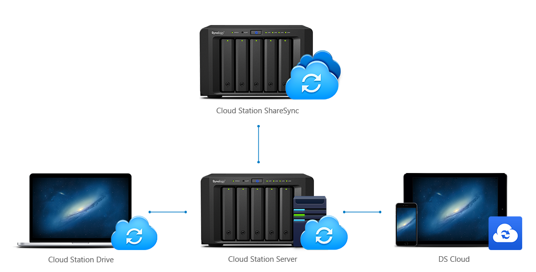 藉由豐富的云端解決方案,DS1515 讓你輕松建立個人云端。Cloud Station 是高效的套件,讓你在不同裝置間同步檔案,同時具有更高的安全性。你可以離線編輯檔案,完成后再同步至 Cloud Station。每個檔案皆可存放高達 32 個版本,使你能將檔案回復(fù)到過去的時間點。透過行動 app DS cloud,所有檔案更新都將自動同步到你的智能手機和平板電腦。針對分布式企業(yè),Synology 可讓兩臺 DiskStation 進行雙向同步,讓不同地點的員工仍可以實時分享相同的檔案。此外,IT 人員還可以手動挑選想要同步到不同裝置上的文件夾,或自動根據(jù)文件格式、大小等標準來篩選。Cloud Station 同步的文件夾可在服務(wù)器端由 DSM 加密,沒有你的密碼,別人無法存取其內(nèi)容。